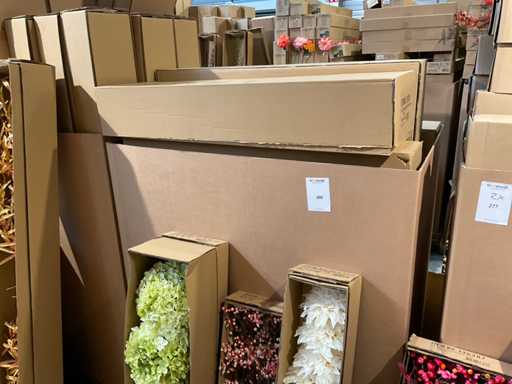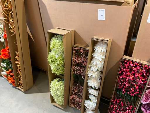 Contenuto di 1 scatola su pallet composta da diversi colori di Dalie, Spray ai frutti di bosco e Ortensie