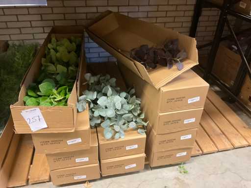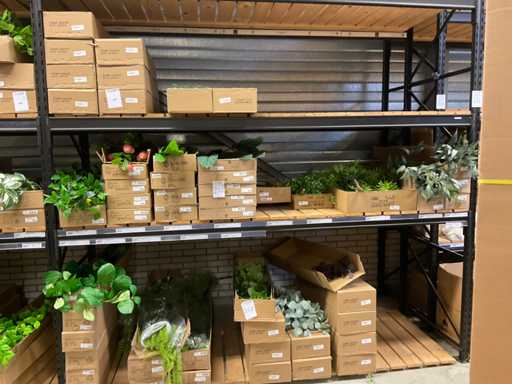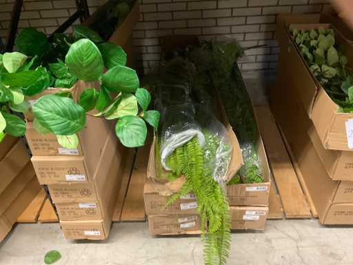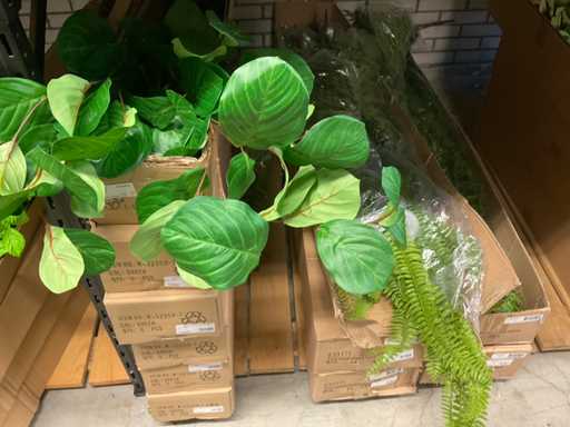 Contenuto di 4 ripiani costituiti da felci e piante sospese, tra gli altri. Silka, esclusa la posizione.