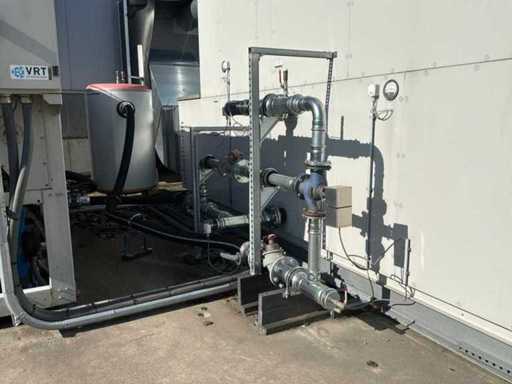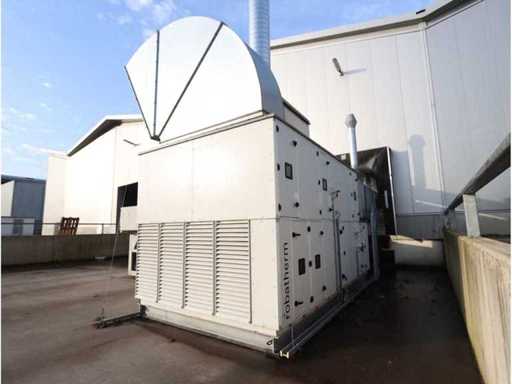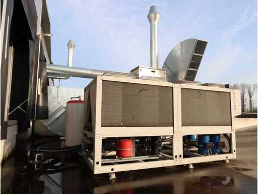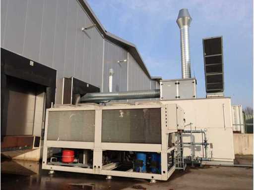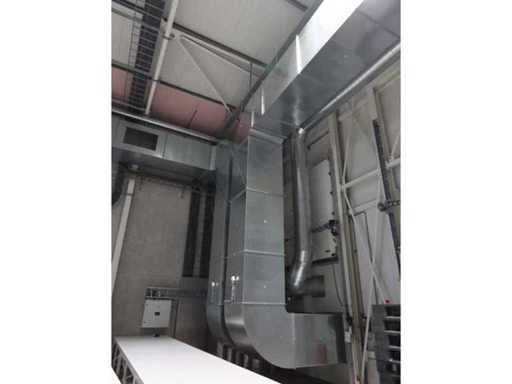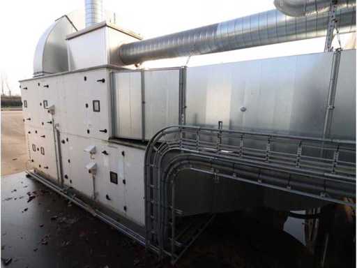 Capacità 28,080m3/h, composta da: 4 unità silenziatore, 2 unità filtrante, 1 unità raffreddatore ad aria, dimensione circa 6300x3000mm, 1 serbatoio di stoccaggio "Akvaterm", 1 refrigeratore tipo "Daikin" tipo EWYQ250DAYNN-H- (2010) tipo refrigerante R410A, 2x 43kg, dimensioni approssimativamente 4850x2020x2450mm, con condotti dell'aria in tutta la fabbrica (su istruzioni di Troostwijk)
