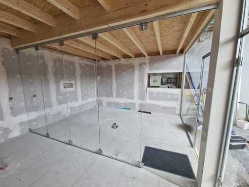 Sistema di vetro con porte per la suddivisione delle stanze, per informazioni dettagliate vedi foto e piani, inclusi il ponte di vetro per il trasporto