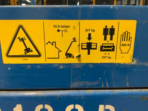Piattaforma compatta a forbice, piattaforma estensibile a 3 m, 277 ore, altezza di lavoro 9,9 m.