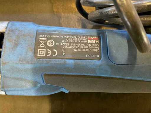 3 smeriffe angolari, tra cui 2 hikoki, 125 mm, 1 HBM da 125 mm, 1 cavo di prolunga da 230 V e 1 multi-macchina HBM.