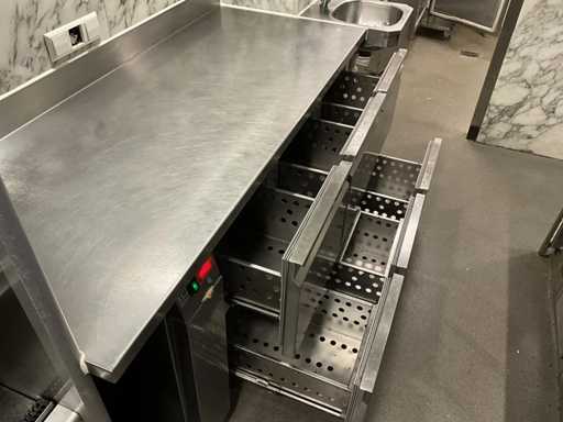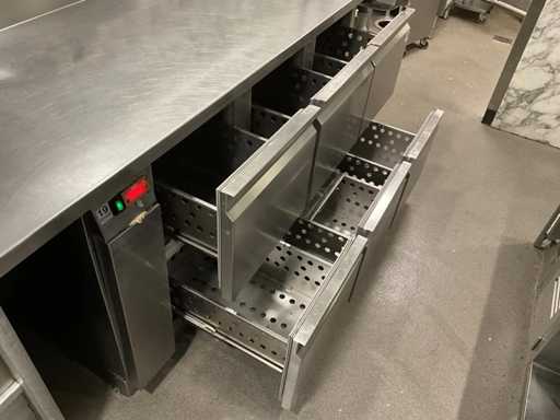 CAUTELA! Lot è un dispositivo collegato a un sistema di raffreddamento centralizzato. Lot non dispone di un proprio compressore di refrigerazione. Il sistema di raffreddamento centralizzato è già stato pompato professionalmente. Dimensioni piano di lavoro (LxP): 174x70 cm. L'acquirente è responsabile dello smantellamento professionale del lotto. La piazzola può essere collegata alla rete elettrica, idrica e/o gasdottistica. I cavi e/o i tubi devono essere ben tappati e lasciati in modo ordinato. I danni alla proprietà o ad altri oggetti saranno recuperati dall'acquirente. Vi consigliamo di approfittare della giornata di osservazione per elaborare un piano di smantellamento.