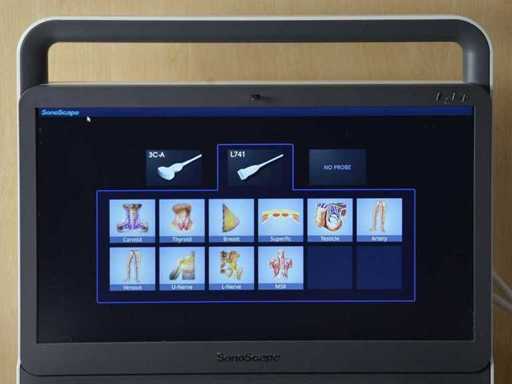 • Sonda lineare superficiale L741 a 4-16 MHz (Area acustica: 49 x 10 mm, gamma di frequenze da 4 MHz a 16 MHz, Profondità immagine: 100 mm