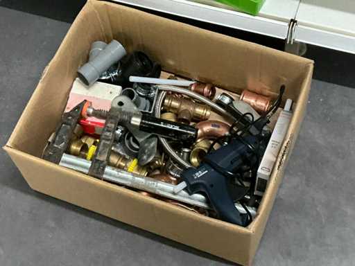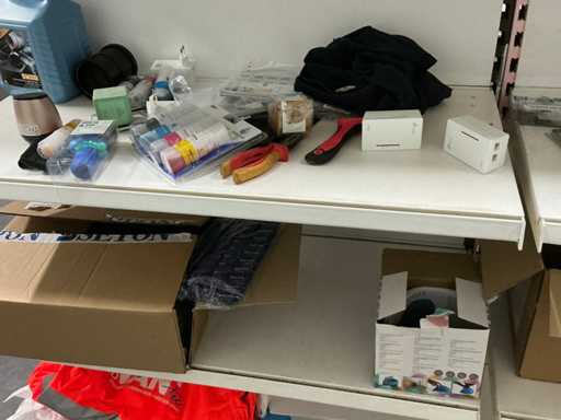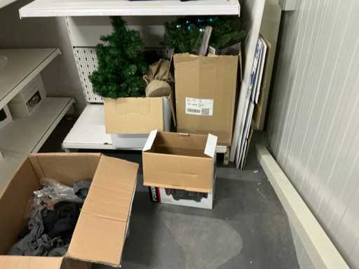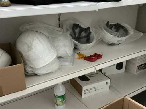 Contenente alcuni materiali d'ufficio vari, decorazioni natalizie, abiti da lavoro firmati Nantec,