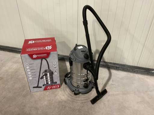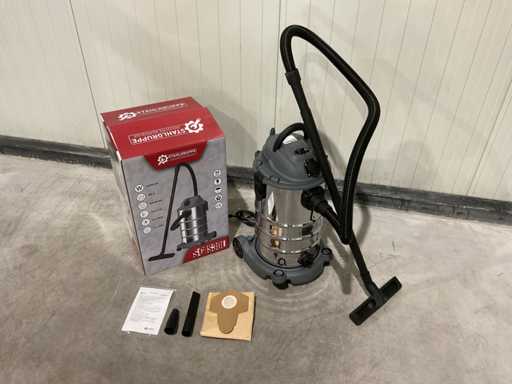 Provvedere; 4 ruote girevoli; Cavo di alimentazione 4M; tubo aspirapolvere da 1,5 m; Aspirazione: 17 kPa; Presa aggiuntiva: 2000 W; Spazio di stoccaggio per accessori; capacità serbatoio di 30 litri; Serbatoio in acciaio inox; Non utilizzato in scatola (395x385x600 - 7,2 KG)