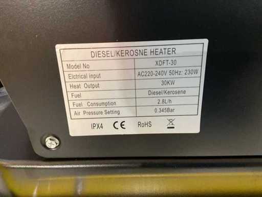 Dotato di potenza riscaldante: 30kw; collegamento: AC 220–240 V ~ 50 Hz; consumo: 2,8 L/h; Consumo elettrico: 230W; Impostazione pressione dell'aria: 0,32 bar; Inutilizzati nella scatola