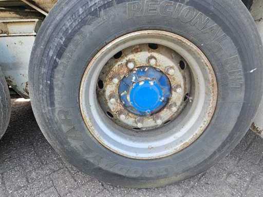 come ROR del marchio; sospensioni pneumatiche; freni a tamburo; carico massimo per asse 9000 kg; dimensione degli pneumatici 385/65 R22.5 ; 6 ruote