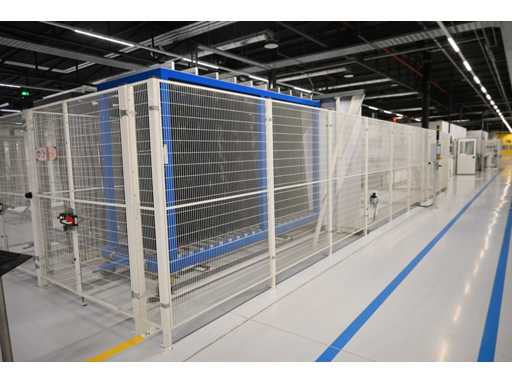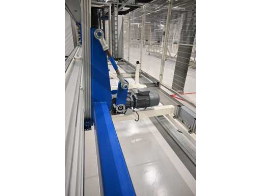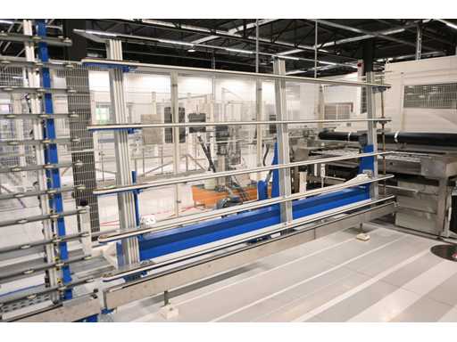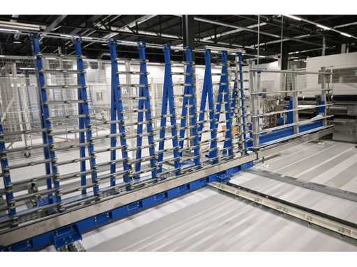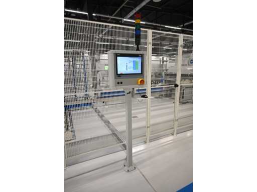 Comprende 2 stazioni di carico vetro Benteller, un nastro trasportatore Benteler per carico/scarica (dimensione circa L420 x H225 cm) e un tavolo inclinabile Benteler per carico/scaricamento (dimensioni circa L380 x H210 cm). Equipaggiato con Siemens Simatic HMI Touch - controllo. Investimento macchina: €190.000 excl. IVA. Questo lotto fa parte del lotto combinato 221 (lotto 201-220).
