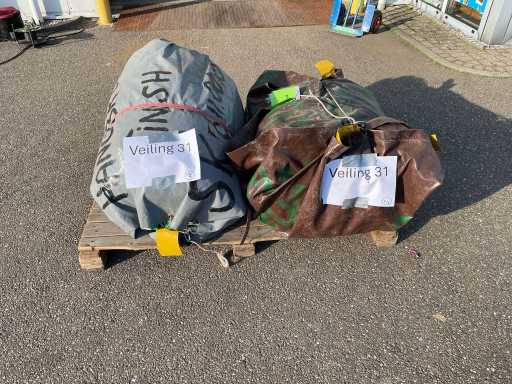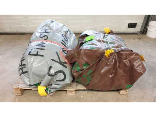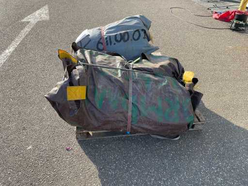 Svendita esclusa pallet, soffiatore, bobina e cinghie per le legature.