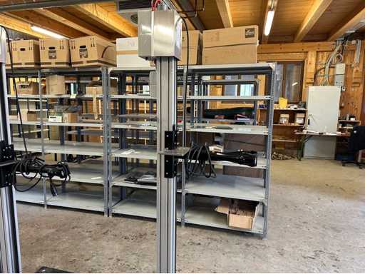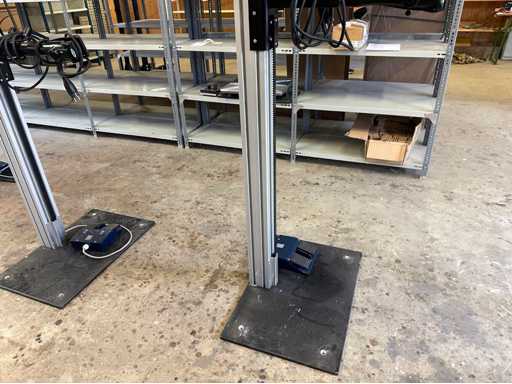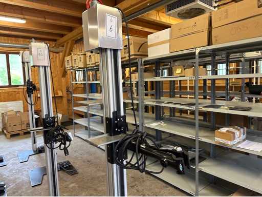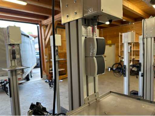 Supporto per bicicletta: Modello "Vario E" peso massimo 40kg Serie n.: 23882-2 Altezza di montaggio: circa 600-1700 mm Colonna del cavalletto: profilo in alluminio anodizzato argento, 100 x 100 mm Piastra di base: Acciaio, verniciata di nero, Connessione: 230 V / 50 Hz, 16 A VAR modulo di fissaggio artiglio (per fissaggio al tubo sella della sella) inclusi 2 pezzi. Pezzi piccoli peso vassoio approssimativamente: 70 kg↵ Circa. Dimensione in loco. (l x l x h): 500x700x2200 mm↵