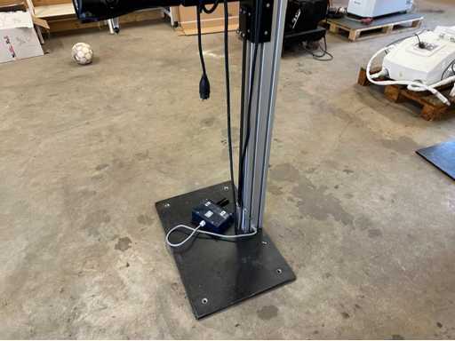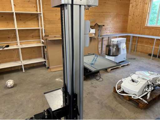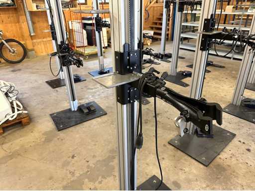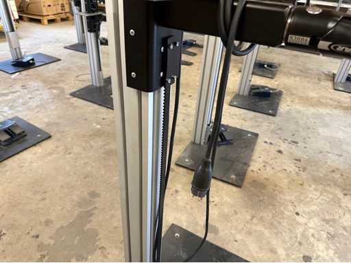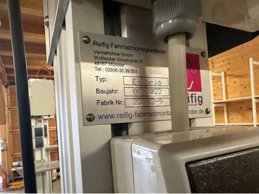 Supporto per bicicletta: Modello "Vario E" peso massimo 40kg Serie n.: 23882-9 Altezza di montaggio: circa 600-1700 mm Colonna del cavalletto: profilo in alluminio anodizzato argento, 100 x 100 mm Piastra di base: Acciaio, verniciata di nero, Connessione: 230 V / 50 Hz, 16 A Modulo di montaggio VAR (per montaggio sul tubo sella della sella) inclusi 2 pezzi. Pezzi piccoli peso vassoio approssimativamente: 70 kg↵ Circa. Dimensione in loco. (l x l x h): 500x700x2200 mm↵