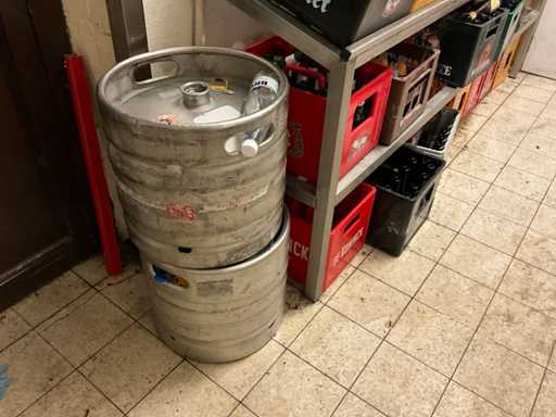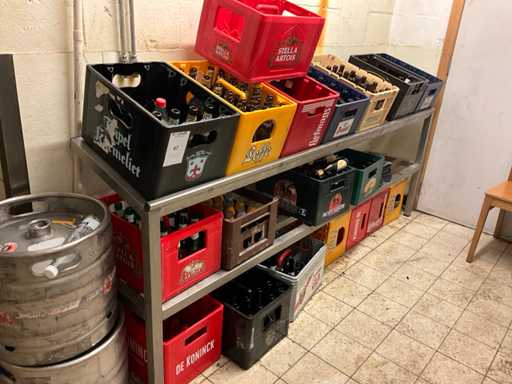 Comprende circa 45 diversi contenitori di vuoti, con o senza contenuto, oltre a 2 barili di birra vuoti