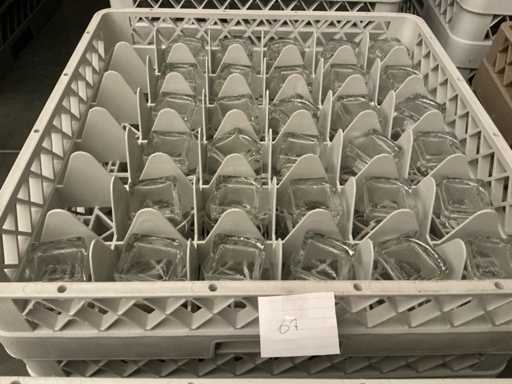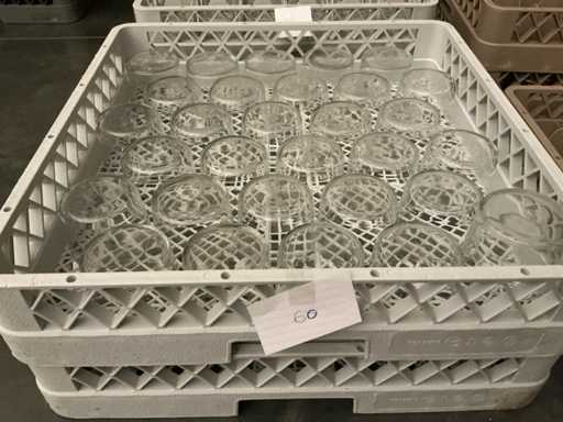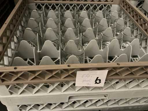 Molti bicchieri da 4 snack diversi. Con il vassoio.