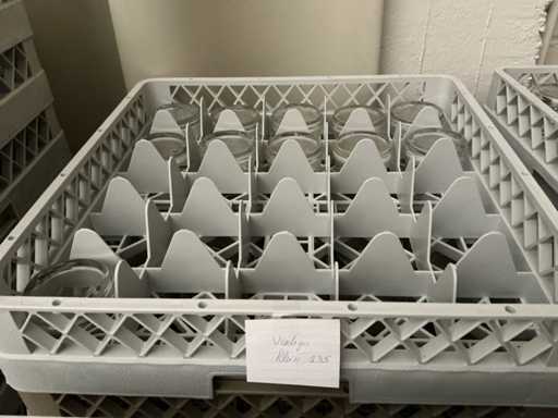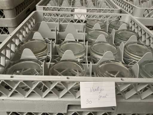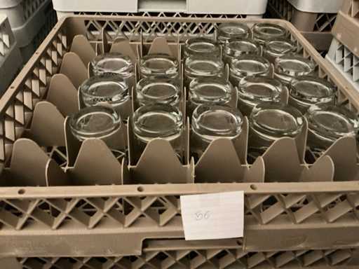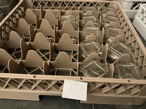 Molti bicchieri per snack di forme e dimensioni diverse. Con il vassoio.