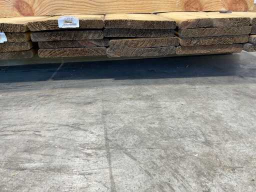 Le assi impregnate di abete, non le hanno asciugate. Le mensole hanno dimensioni di 180 x 14 x 1,6 cm.