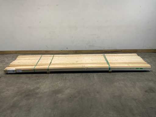 Assi di abete piallato, di dimensioni di 420 x 12,5 x 2 cm ciascuna.