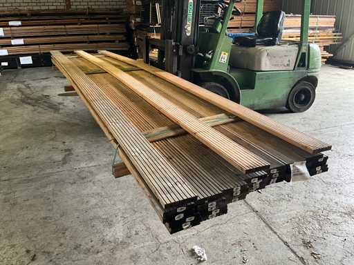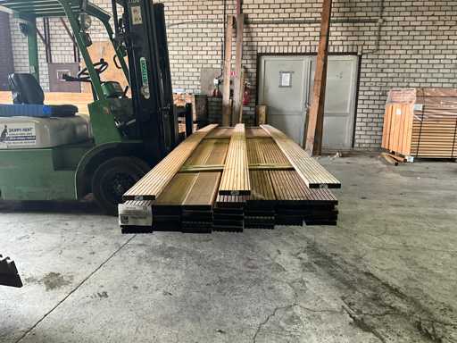Questo decking Douglas è perfetto per creare un pavimento per patio elegante e robusto. Con una dimensione di 500 cm di lunghezza, 13,8 cm di larghezza e 2,4 cm di spessore, questo scaffale offre la base ideale per un bellissimo spazio esterno.