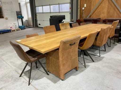 Composto da un tavolo di 350x110x75 cm con 11 sedie.