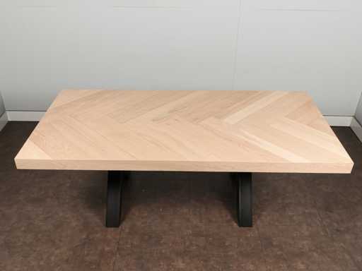 Tavolo da pranzo, Quercia a spina di pesce su MDF, nota relativa a foglia singola, non trattato, contiene 1 coli