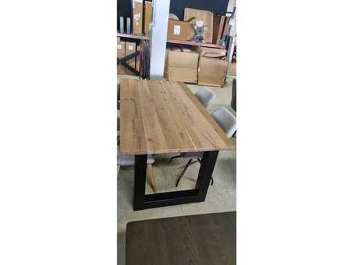 1 x tavolo da pranzo Quercia vecchia solida dritta circa 180x100x78cm Spessore 4 cm, colore naturale, gambe a U in metallo