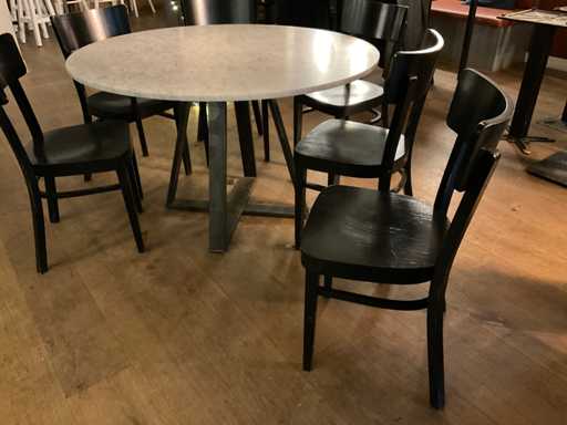 Piano in pietra naturale su base in acciaio con 6 sedie in legno