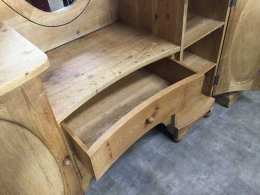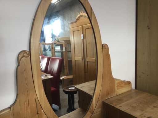 Pino, dotato di 2 armadietti, 2 cassetti, specchio regolabile