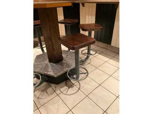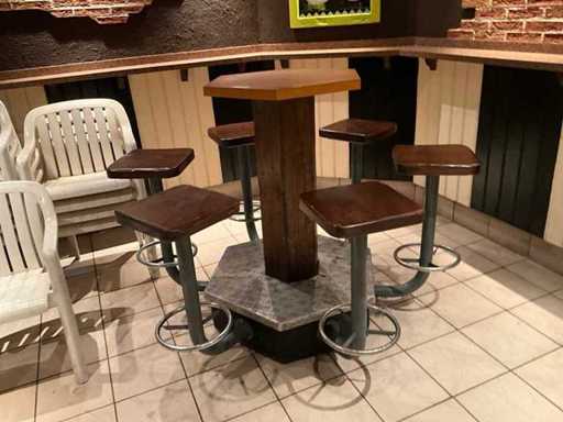 Tavolo in piedi con sgabelli
