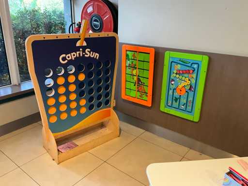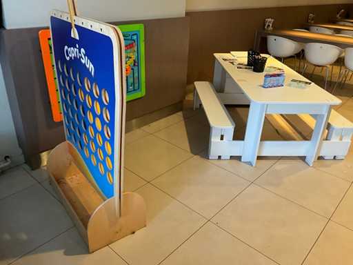 Dispone di panchine fisse, tra cui il gioco "4 in fila" e 2 giochi educativi a parete