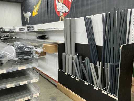 17 metri di impalcature murali, di cui 6 metri bassi e gondola di 4 metri con 2 disposizioni di testa. Senza contenuti. Con 15 cestini di filo metallico.