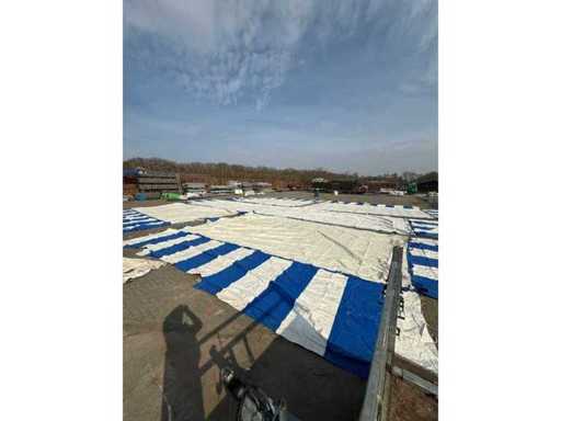 Telo per il cartellone 20x50 / 1000m2. Questo riguarda solo le vele, quindi senza costruzioni; Il telo è adatto per la costruzione nelle seguenti dimensioni: 20x20 20x25 20x30 20x35 20x40 20x45 20x50; La tenda è composta da: Set di testa 2x (2x5m= 10m) Parte intermedia 8x (8x5m= 40m) La tenda ha un'altezza di colma di 7 m e un'altezza laterale di 2,50 m; La tenda è dotata di libro della tenda con calcolo di costruzione e certificato antincendio ed è inclusa su chiavetta USB.
