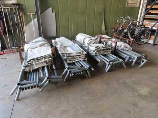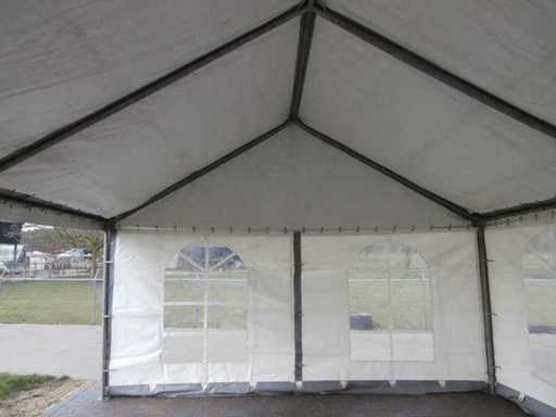 1 x tenda a telaio con tetto a due acque; telo scurito (resistente al fuoco di qualità pesante - Duraskin B1017 - 650 gr/m2). La tenda è dotata di telaio, 4 pannelli laterali a metà finestra e 4 pannelli laterali semi chiusi. La tenda è fornita con certificato antincendio. Incluso il supporto di trasporto (1 tenda per scatola)