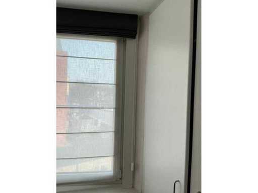 Include un sistema di carrucole manuale e un sistema scorrevole manuale.
