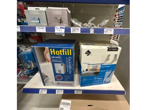 Composta da: 3 vaschette per il filtro di gocciola, 1 cavo per il riscaldamento a pavimento, 1 caldaia, circa 15 valvole di fermamento angolato, 6 termostati, 2 lavelli