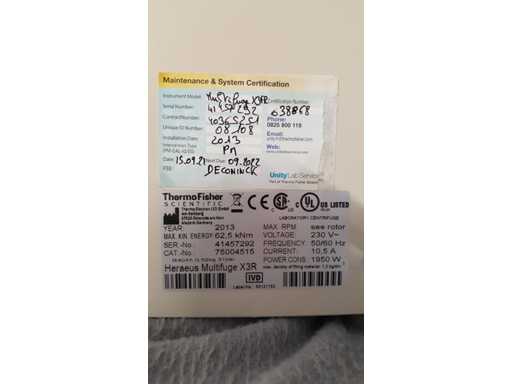 Thermo Fisher Scientific - HERAEUS MULTIFUGE X3R - Centrifuga Refrigerata - 2013