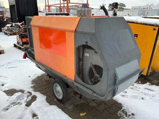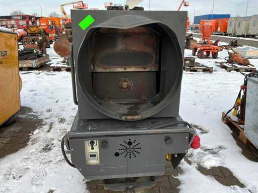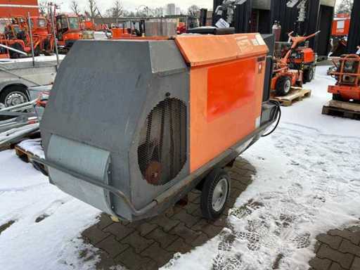mobile; sparato indirettamente; alimentato a diesel; collegamento esterno del carburante; portata volutrice 11500 m3/ora; 7,7 Ampere; diametro dell'uscita dell'aria 600 mm; uscita dei gas di combustione; alzando lo sguardo; scanali per forcelle per carrelli elevatori; Condizioni operative