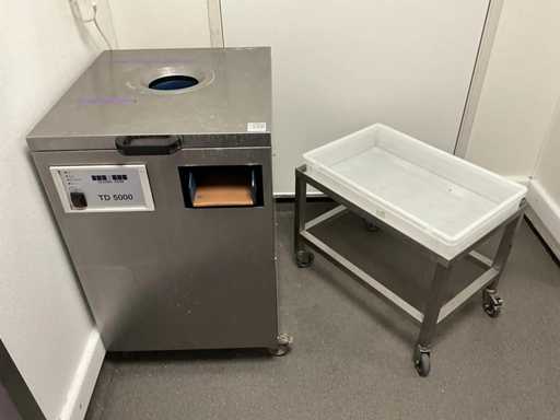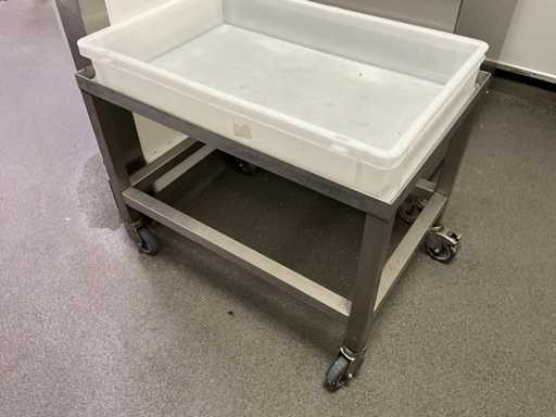 Incl. carrello mobile in acciaio inox con vassoio di raccolta.