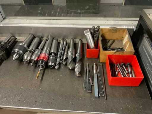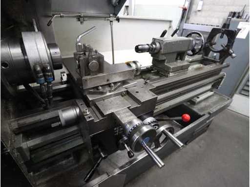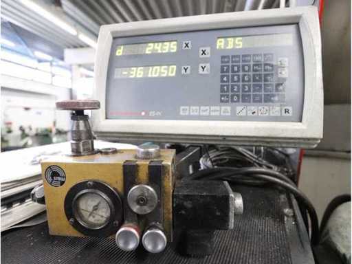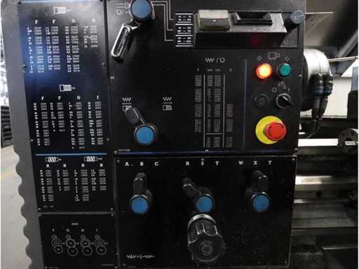 Intervallo di rotazione: Altezza centrale: 195mm, mandrino principale: Camlock D1-6", Potenza del motore: 7,5kW. Equipaggiato con: 1 contatore digitale Esson ES-14 X-Y, occhiali fissi. Include strumenti sull'armadio della porta scorrevole, tra cui: adattatori a scalpello a cambio rapido, centro rotante, maniche per trapani riducenti, teste di trapano.