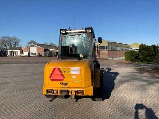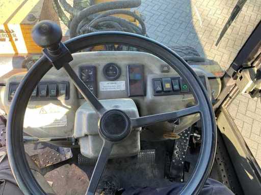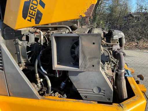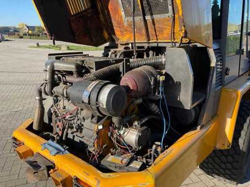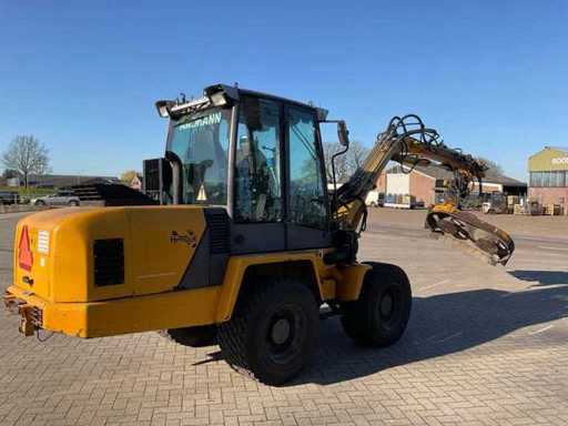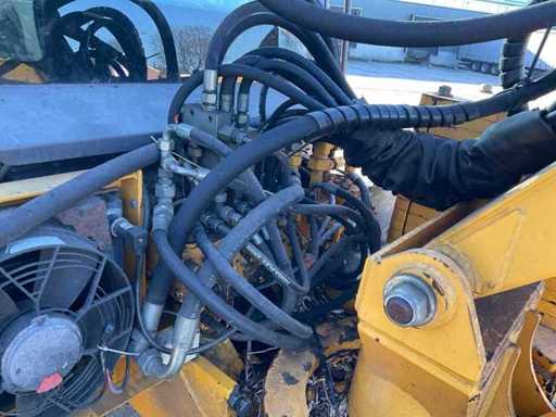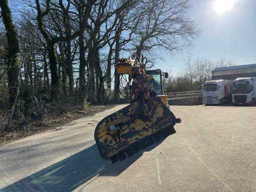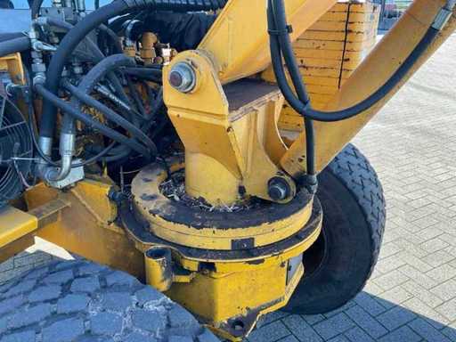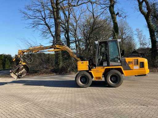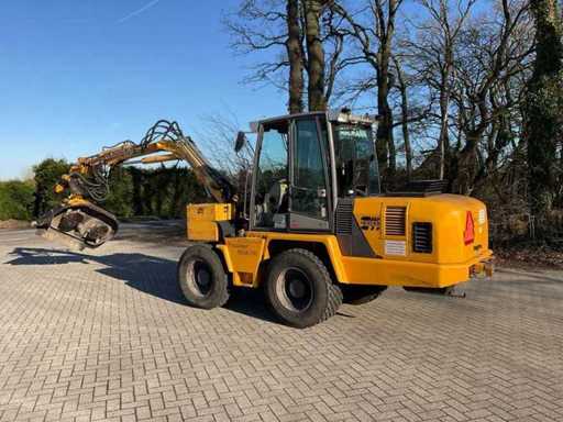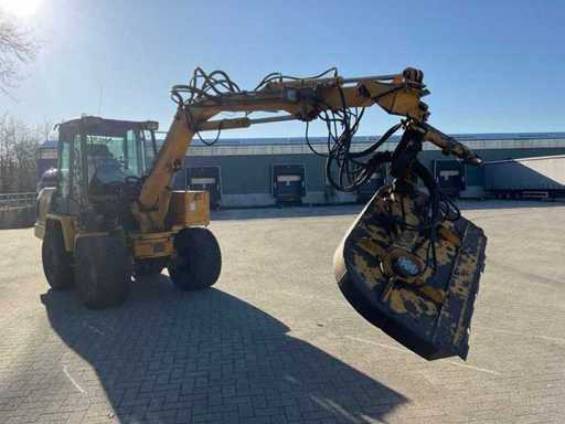 Inclusi Ahlman AZ45e equipaggiata con motore a 4 cilindri (7986 ore) per la trasmissione e i cilindri e un motore a 3 cilindri (5503 ore) per il tosaerba, braccio girevole, sterzaggio a quattro ruote e collettore Shepherd SGMH150.