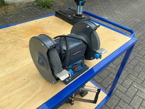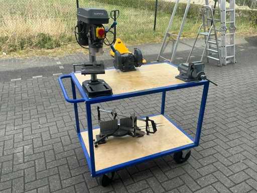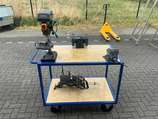 Equipaggiato con trapano da banco Gamma, morsa Gamma, mala Gamma e sega a mitraglie Gamma