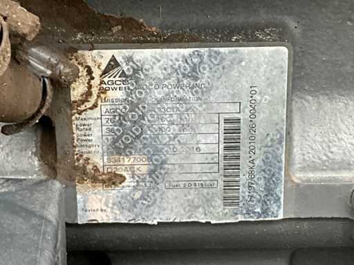 Equipaggiato con motore diesel AGCO Power 44DT a 4 cilindri; tipo di cabina CS09MF; 3 valvole idrauliche posteriori a doppio effetto; Velocità PTO 540/1000 giri/min