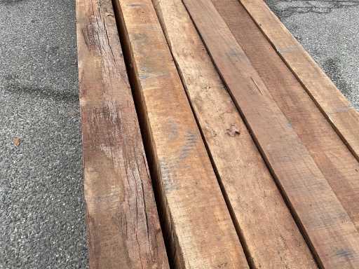 Travi in legno duro Azobé spesse 600 x +/-16,5 x 20 cm.