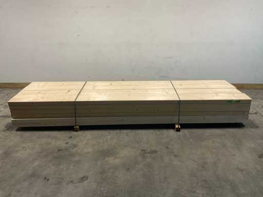 Travi di abete piallate, di dimensioni di 375 x 25 x 7,5 cm ciascuna.