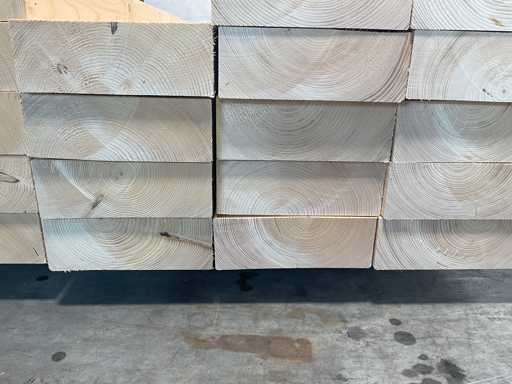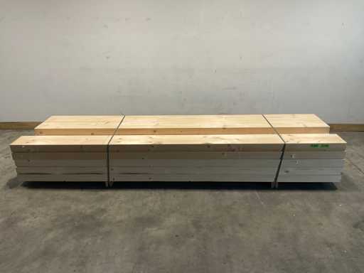 travi di abete piallato, di dimensioni di 375 x 27,5 x 10 cm ciascuna.