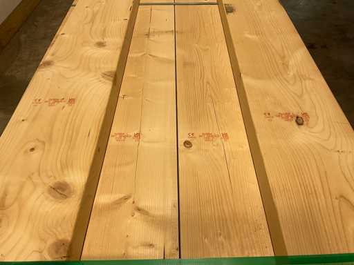 Travi di abete piallato, di dimensioni di 450 x 25 x 7,5 cm ciascuna.