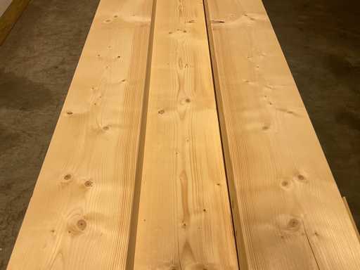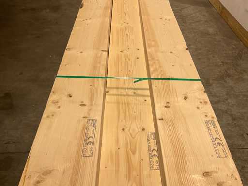 Travi di abete piallato, di dimensioni di 510 x 30 x 10 cm ciascuna.