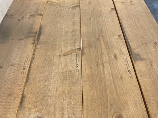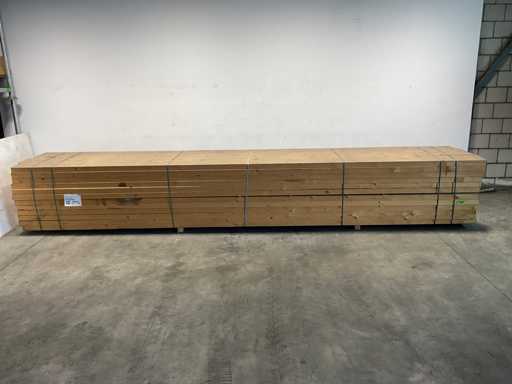 Travi in abete piallato, di dimensioni di 580 x 25 x 7,5 cm ciascuna.