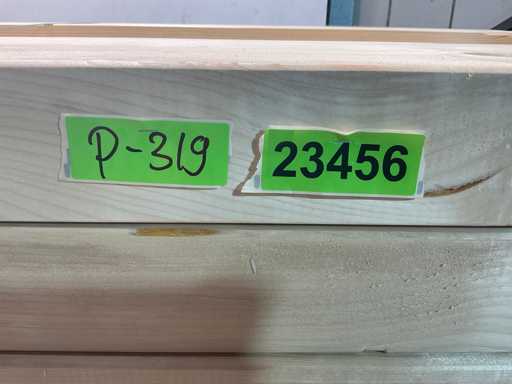 Travi in abete piallato, di dimensioni di 660 x 30 x 10 cm ciascuna.