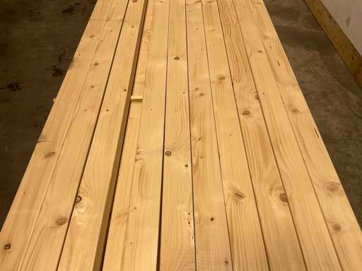Travi di abete pialate, di dimensioni di 420 x 10 x 7,5 cm ciascuna.