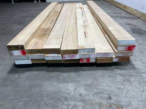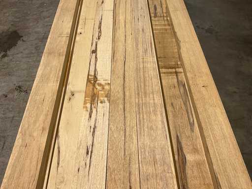 Queste travi Fraké (scelta B) hanno dimensioni di 270 x 15,5 cm e uno spessore di 5 cm. Realizzati in legno duro resistente, sono adatti sia per applicazioni interne che esterne e offrono stabilità e supporto a varie strutture.